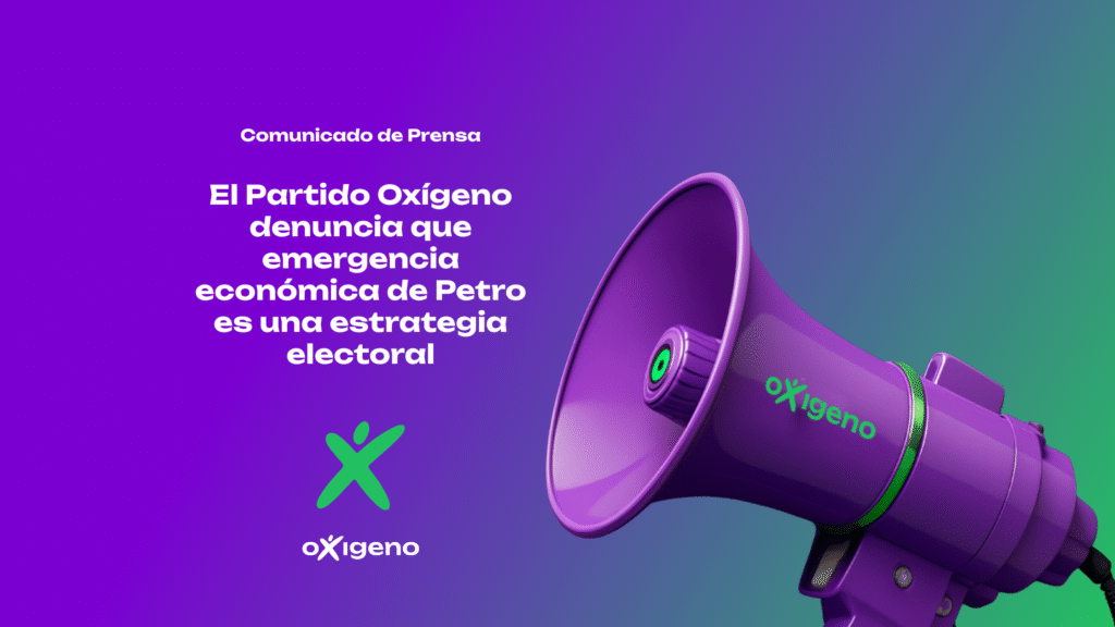 Bogotá, 23 de diciembre de 2025 – El Partido Oxígeno califica este como “arbitraria” y de motivación “electoral” la decisión del gobierno de Gustavo Petro de decretar emergencia económica para imponer una reforma tributaria sin pasar por el Congreso de la República.